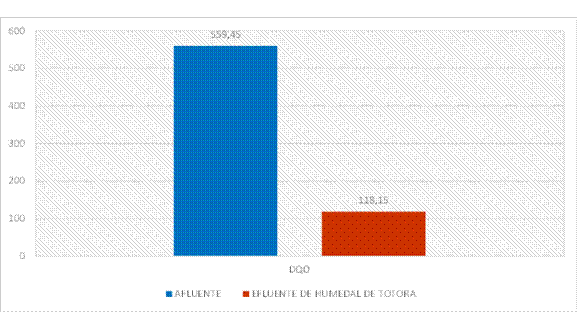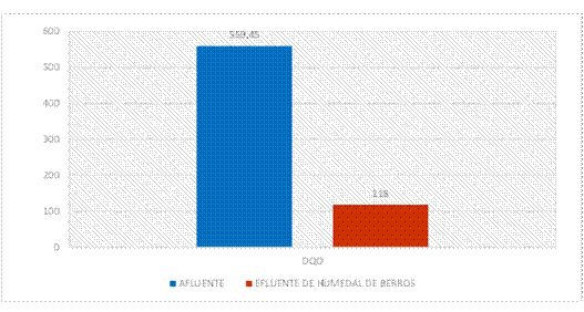 En relación a la eficiencia de demanda química de oxígeno (DQO) (Gráfico 1), con una eficiencia, 559.45 media del afluente y