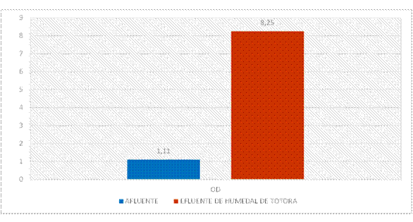 Gráfico 2. Comparación del oxígeno disuelto del afluente y efluente del humedal de totora.