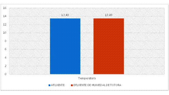 Gráfico 4. Comparación de la temperatura del afluente y efluente del humedal de totora..