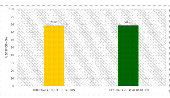 Gráfico 11. Porcentaje de eficiencia de los humedales artificiales de totora y berros.