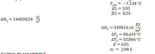 temperatura final de congelación y análisis de sensibilidad. El fruto con bajo