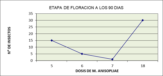 floración demostrando una baja infestación con un 5 %, las dosis de T3= 140
