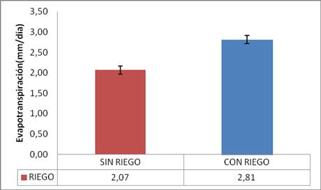 Gráfico 3. Evapotranspiración promedio a 80 cm de profundidad para el factor Riego.
