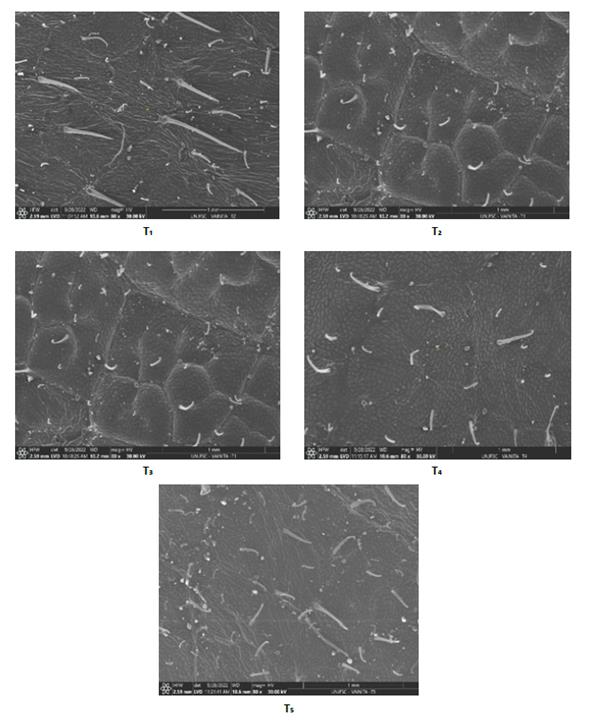 de biol se incrementó la densidad de tricomas, lo cual se destaca el T5 con 309 tricomas/mm2 que