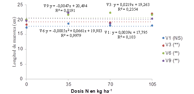 mazorca mostró significancia en la dosis de nitrógeno, las otras