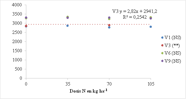 una ecuación cuadrática. La combinación de las dosis de N con diferentes