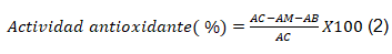 capacidad antioxidante en las dos muestras fueron