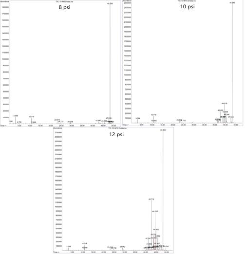 resultados similares para presiones de extracción de 8 y 10 psi en ambas