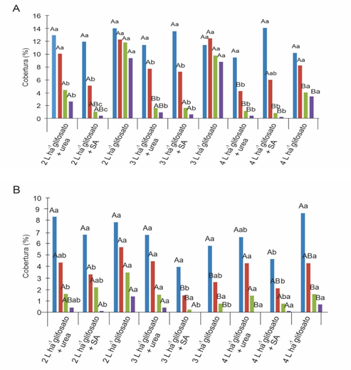de glifosato más 5 kg ha-1 de urea, 2 L ha-1 de glifosato