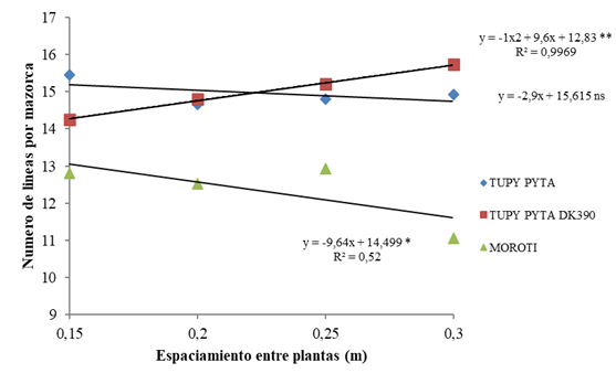 "DK 390" presentó mayor número de líneas por mazorca. Las
