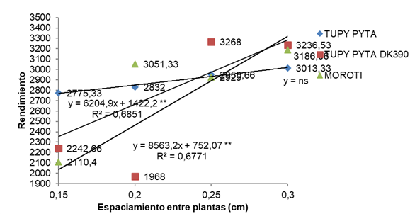 espaciamientos. Los mejores resultados se lograron con 0,30 metros entre