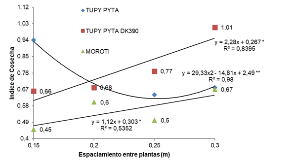"Morotĩ" standing out. Productivity and harvest index increased with