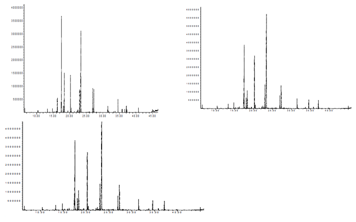 The chemical composition was evaluated by gas chromatography coupled to mass