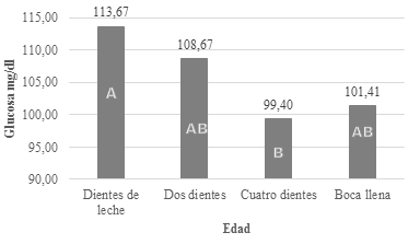 Las llamas DL por la intensa actividad física y metabólica presentan niveles sanguíneos fisiológicos superiores de glucosa producto de la absorción, glucogenólisis y gluconeogénesis; a medida que avanza la edad las actividades físicas tienden a disminuir lo que incide a que los niveles de glucosa disminuyan en los animales de mayor edad.